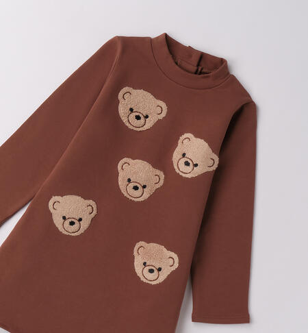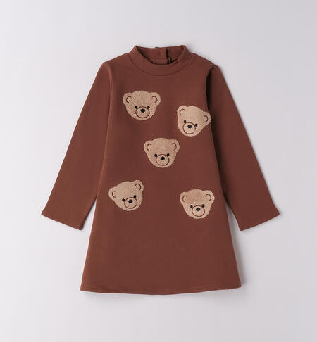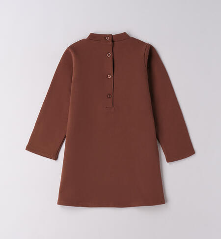 Abito per bambina iDO 9 mesi – 8 anni realizzato in felpa invernale. Modello arricchito da ricamo spugna. Apertura dietro con bottoni. Lunghezza sopra al ginocchio
