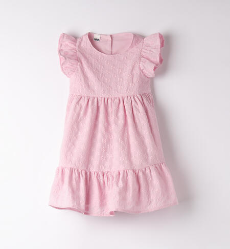 Abito per bambina iDO da 9 mesi a 8 anni realizzato in tessuto ricamato con fodera in cotone. Il modello presenta apertura sul retro con bottoni, fantasia tinta unita. Lunghezza al ginocchio.