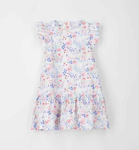 Abito estivo per bambina iDO realizzato in popeline 100% cotone con fantasia all over di cuori. Lunghezza al ginocchio.