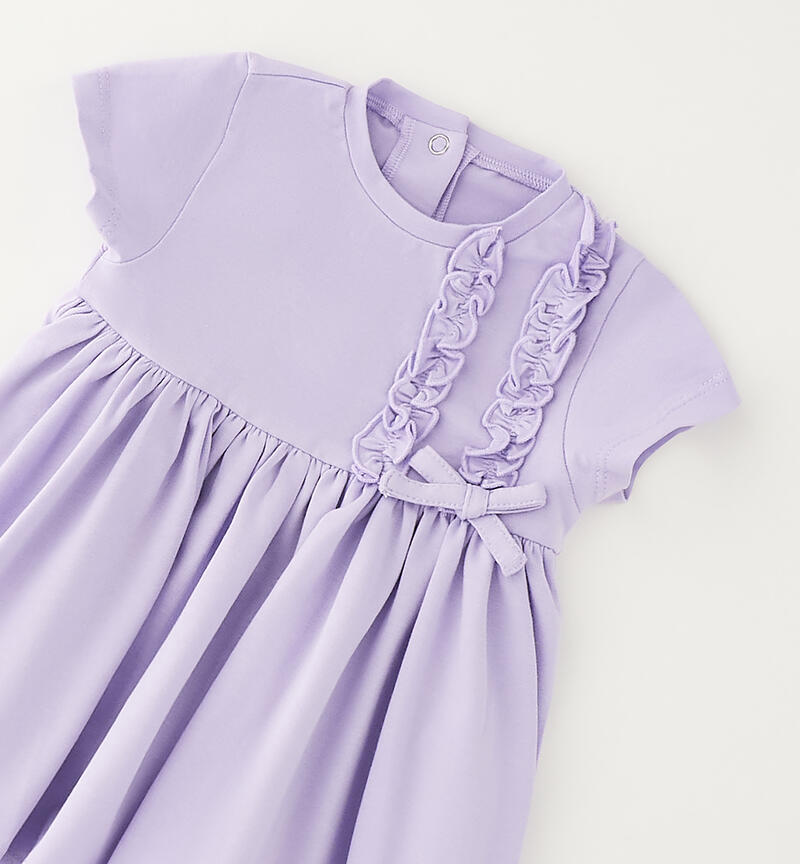 Abito in jersey stretch di cotone Minibanda per neonata con ruches davanti. Lunghezza sopra al ginocchio. Apertura dietro con bottoni a pressione.