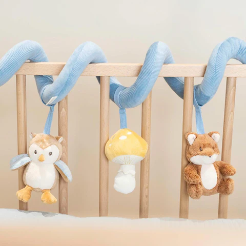 Guarda, tocca e scopri! Questa spirale di attività divertente e coinvolgente terrà occupati i bambini. Attacca facilmente questo pratico giocattolo a qualsiasi cosa, dalla culla al box. Stimola i sensi e la coordinazione occhio-mano. La spirale di attività è realizzata in velluto a coste con cotone e ruota attorno a una piccola volpe, un fungo e un gufo. ATTENZIONE: Fissare questo giocattolo fuori dalla portata del bambino. Per evitare che il bambino rimanga impigliato e si faccia male, rimuovere questo giocattolo quando inizia a gattonare. Da assemblare da un adulto.