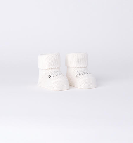 Babbucce neonato modello unisex iDO realizzate in filato con stampa laminata