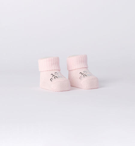 Babbucce neonato modello unisex iDO realizzate in filato con stampa laminata