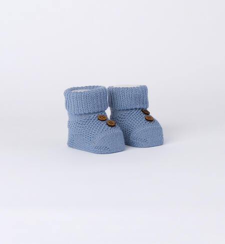 Babbucce per neonato iDO realizzate in filato con rivoltino e bottoni in applicazione