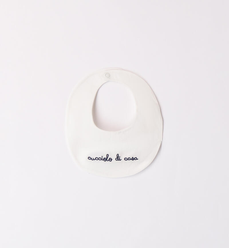 Bavetta “Cucciolo di casa” neonato Minibanda realizzato in tessuto operato e apertura con bottone a pressione. Scopri tutta la selezione Newborn Minibanda!