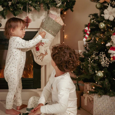 Porta calore nella tua casa con questa grande calza natalizia in morbido tessuto, splendidamente trapuntata e decorata con amore con ricami natalizi. Perfetta da riempire con piccole sorprese e creare ricordi durante le feste. Un’attrazione suggestiva per ogni famiglia, anno dopo anno.