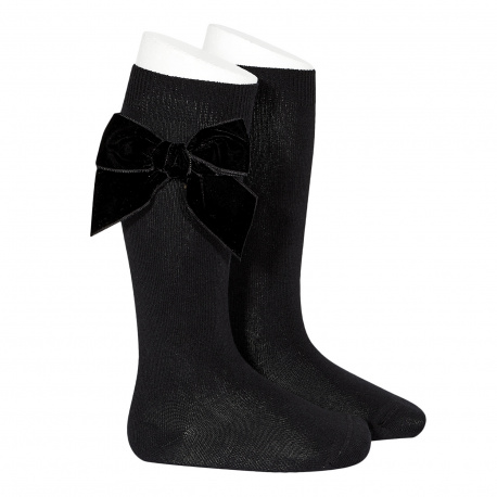 Calze lunghe in cotone a maglia rasata con grande fiocco in velluto.