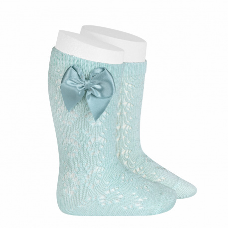 Calze lunghe in cotone con traforate motivo geometrico con fiocco.