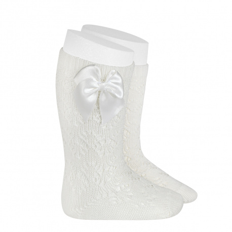 Calze lunghe in cotone con traforate motivo geometrico con fiocco.