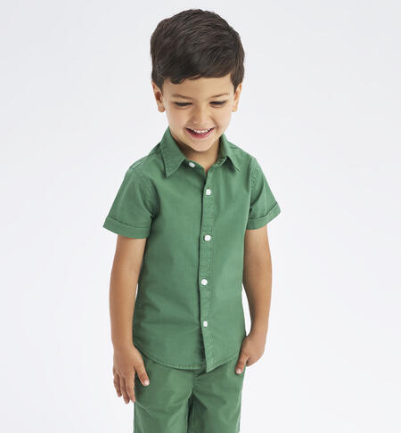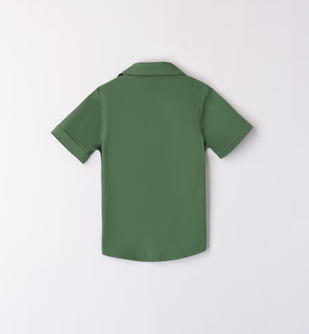 Camicia iDO a manica corta per bambino realizzata in popeline stretch di cotone. Apertura davanti con bottoni.