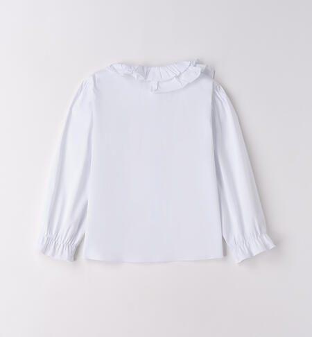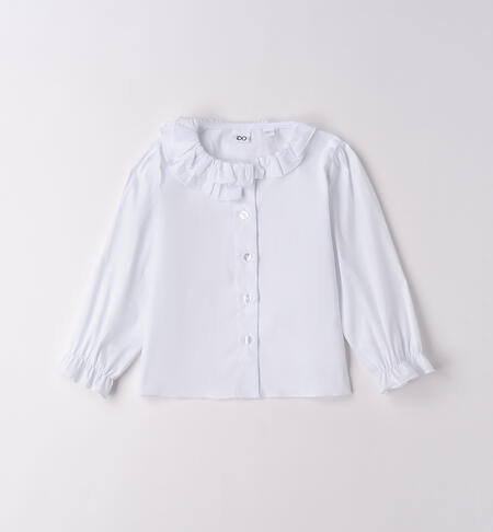 Camicia per bambina iDO 9 mesi – 8 anni realizzata in popeline stretch. Ruches sul colletto ed elastico sul fondo manica. Apertura con bottoni.