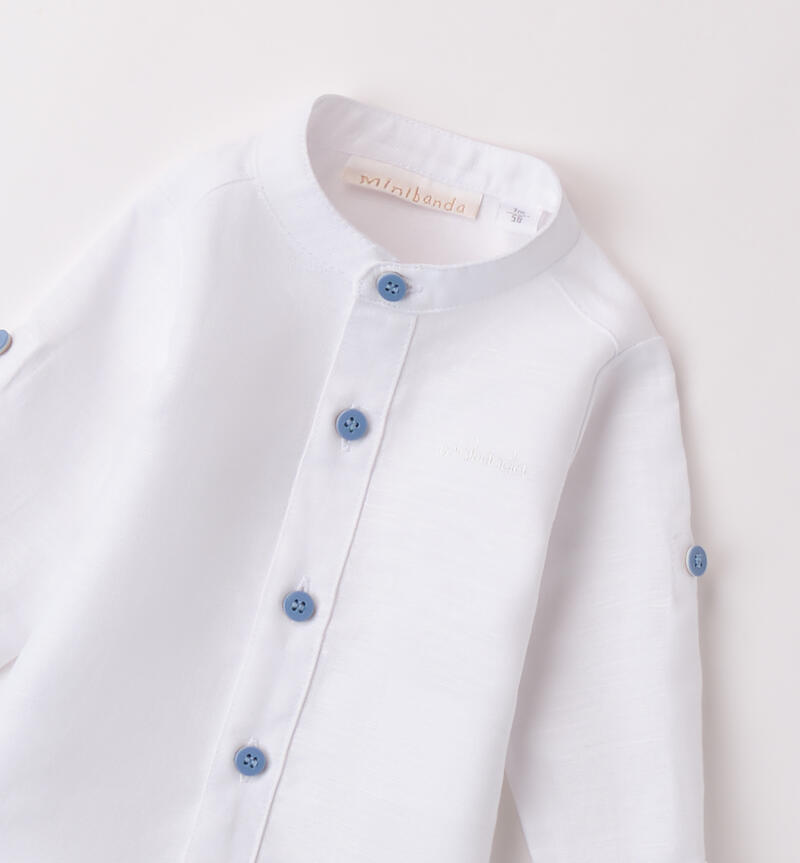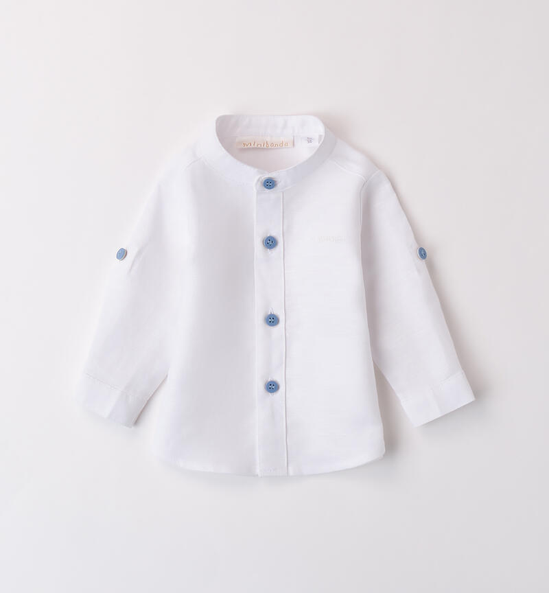 Camicia neonato Minibanda 1-24 mesi realizzata in lino e cotone. Il modello presenta apertura frontale con bottoni ed è realizzato in fantasia tinta unita. Colletto alla coreana