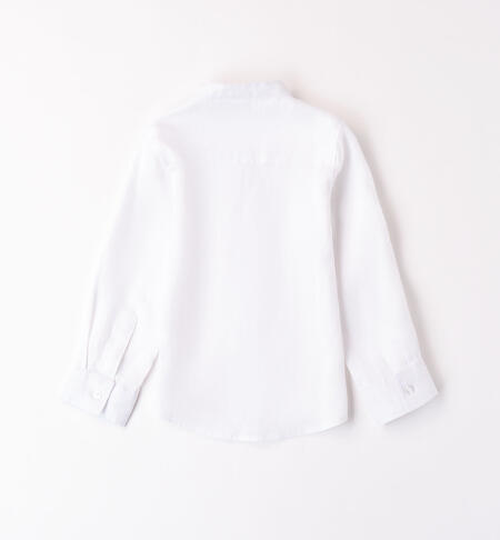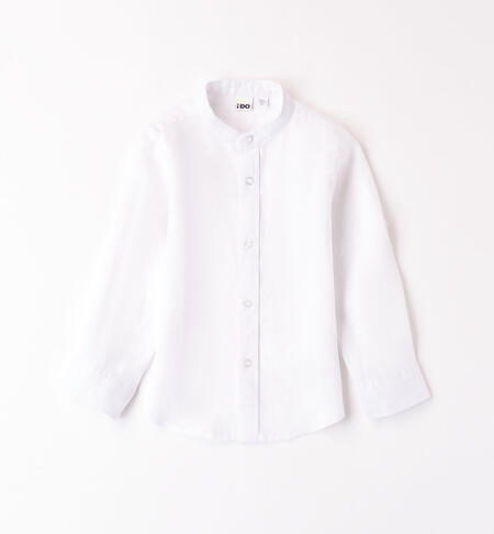 Camicia iDO per bambino realizzata in 100% lino, collo alla coreana. Possibilità di accorciare le maniche tramite apposito bottone.