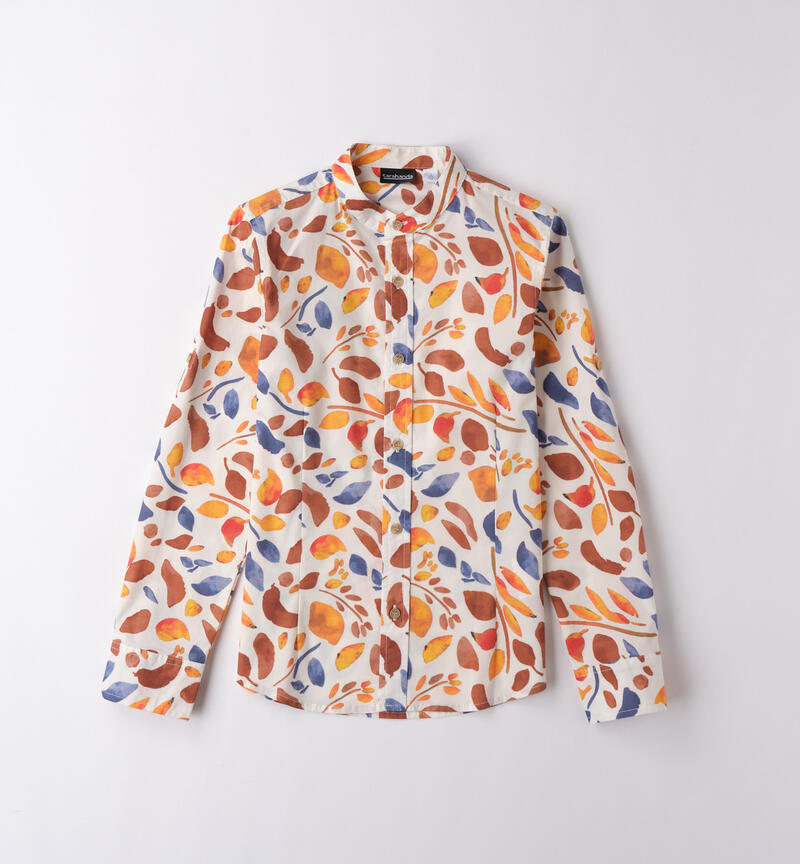 Camicia per bambino Sarabanda in popeline stretch di cotone. Il modello presenta apertura frontale con bottoni e fantasia allover. Modello alla coreana.