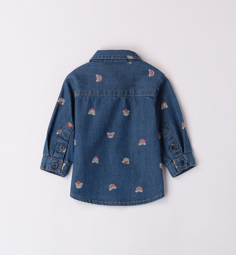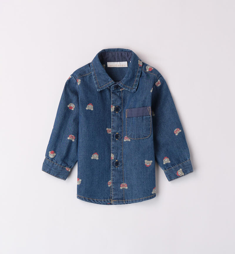 Camicia neonato Minibanda realizzata in denim 100% cotone. Il modello presenta apertura frontale con bottoni ed è realizzato in fantasia allover.