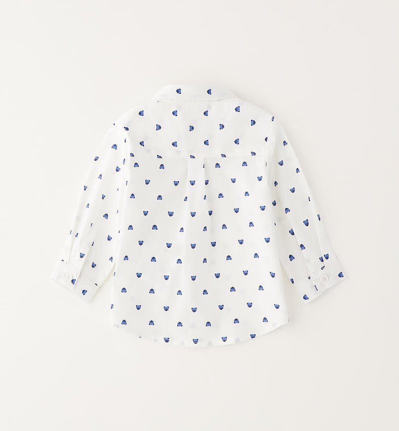 Camicia a manica lunga per neonato Minibanda realizzata in popeline stretch di cotone con fantasia all over di orsetti. Modello classico con apertura tramite bottoni.