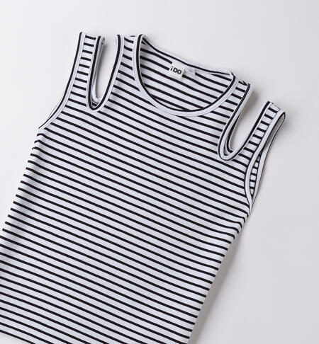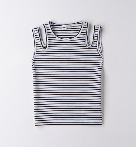 Canotta iDO per ragazza da 8 a 16 anni realizzata in jersey stretch di cotone, fantasia a righe