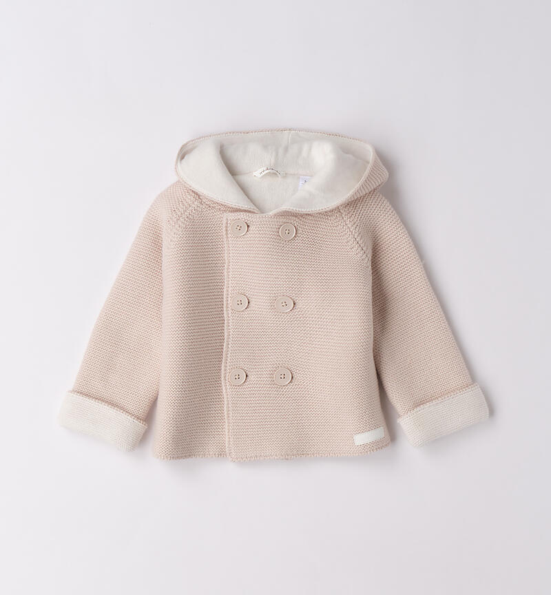 Cappotto per bimbi neonati Minibanda realizzato in tricot cotone misto lana. Modello foderato. Apertura doppiopetto
