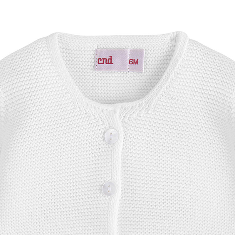 Cardigan a punto legaccio in cotone 100%. In vari colori. Può essere abbinato con i calzamaglie e gli accessori per i capelli.