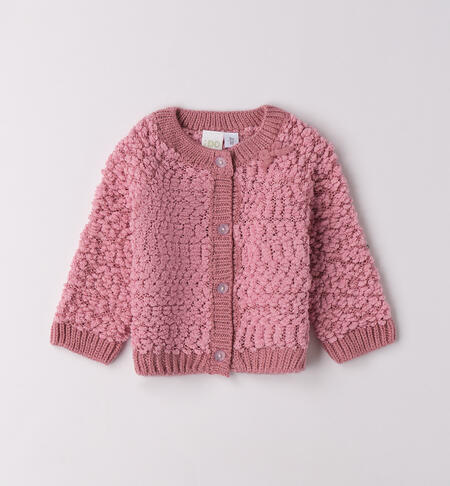 Cardigan per bimba iDO realizzato in tricot effetto bouclè. Il modello presenta apertura sul davanti con bottoni