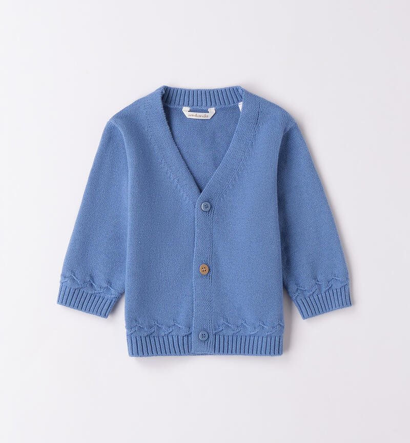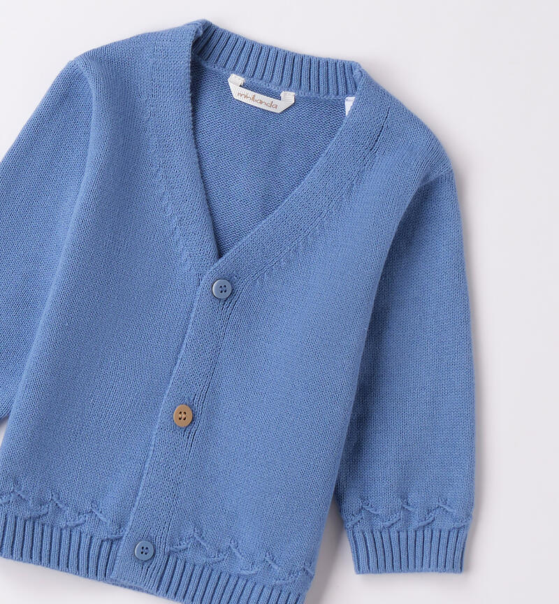 Cardigan per bimbo Minibanda 1-24 mesi realizzato in 100% cotone. Il modello presenta apertura frontale con bottoni ed è in fantasia tinta unita con polsini sul fondo e sulle maniche