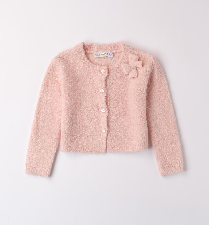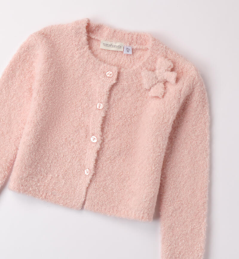 Cardigan per bambina Sarabanda 9 mesi – 8 anni realizzato in tricot. Il modello presenta apertura frontale con bottoni e fiocco in applicazione.