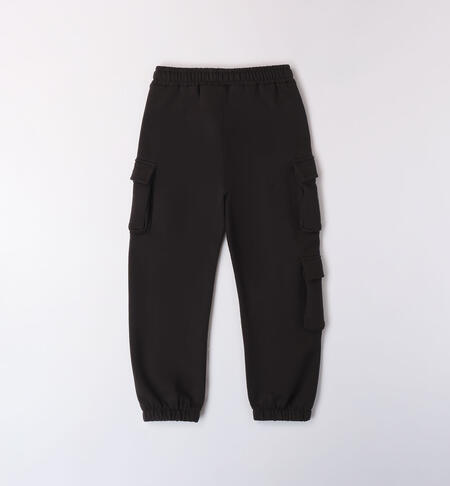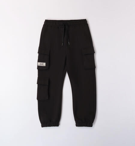 Pantalone iDO modello cargo realizzato in felpa 100% cotone. Il modello ha vita elasticizzata con coulisse, due tasconi laterali su una gamba e una sull’altra. Polsini elasticizzati. Modello unisex.