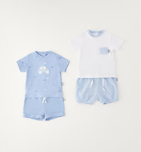 Kit iDO per neonato da 1 a 24 mesi realizzato in cotone, composto da due graziosi completini. La t-shirt ha l’apertura sul retro con bottoni a pressione e il pantaloncino ha l’elastico in vita.