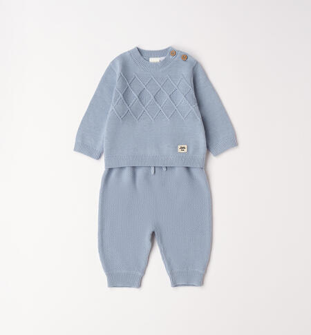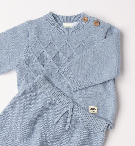 Completino per neonato iDO da 0 a 18 mesi realizzato in morbido tricot 100% cotone. Maglia con apertura sulla spalla tramite bottoni e particolare ricamo davanti.