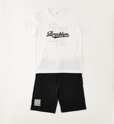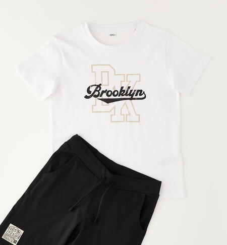 Completo manica corta per ragazzo iDO realizzato in jersey 100% cotone. Modello composto da t-shirt e pantalone al ginocchio