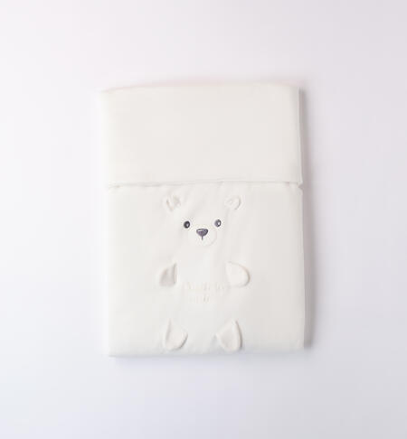 Copertina per neonato iDO in ciniglia e interlock con imbottitura in ovatta. La copertina ha le seguenti misure: 100×75 cm, ideali per la culla.