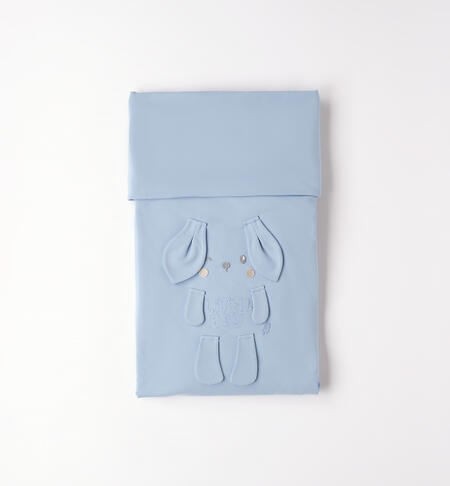Copertina per neonato iDO realizzata in jersey stretch di cotone con leggera imbottitura in ovatta. Ricami e applicazioni davanti. Misura per culla: lunghezza 100 cm e larghezza 75 cm.