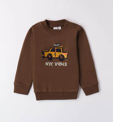 Felpa per bambino iDO realizzata in felpa pesante. Il modello, girocollo, presenta fino alla taglia 3 anni, apertura sulla spalla con bottoni a pressione per agevolare il cambio e la vestizione. La felpa รจ in fantasia tinta unita con stampa frontale e polsini sul fondo e sulle maniche.