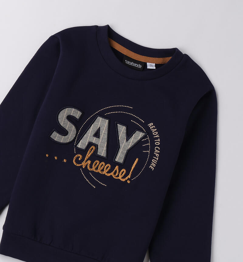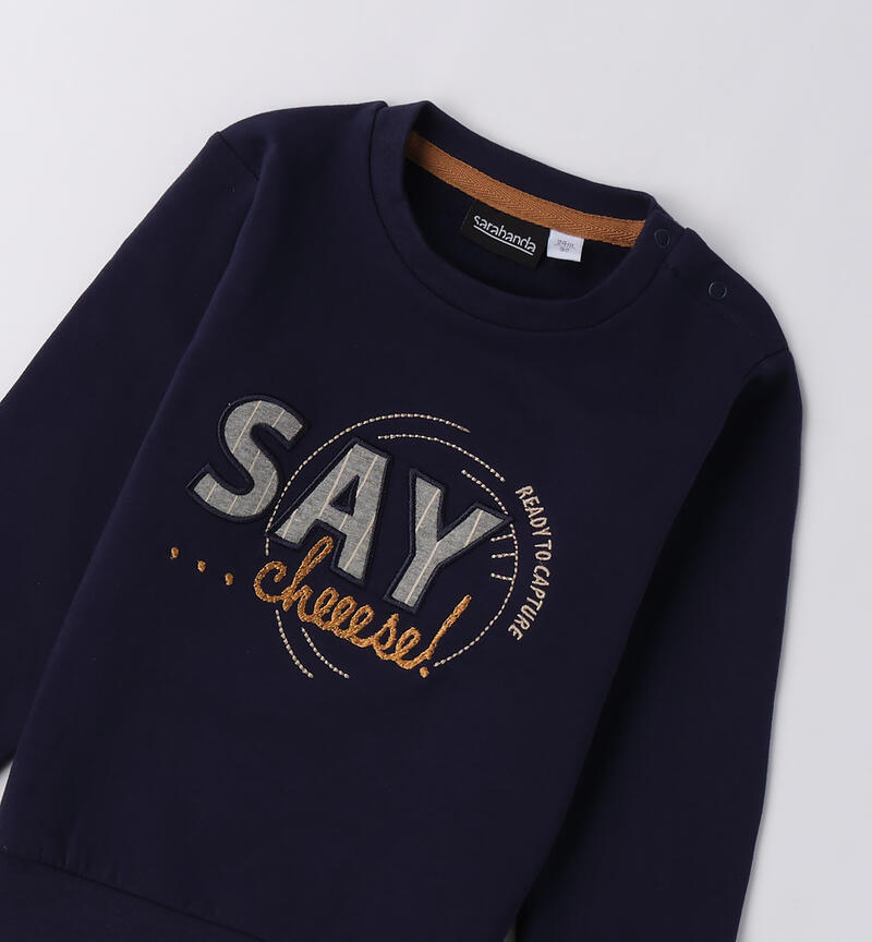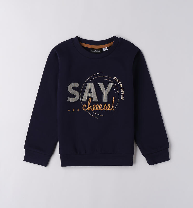 Felpa bambino Sarabanda da 9 mesi a 8 anni realizzata in felpa invernale con felpatura interna. Modello arricchito da stampa e ricami