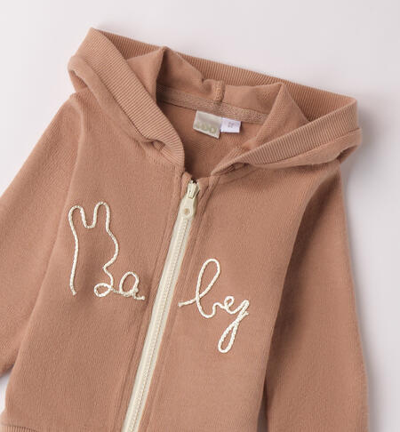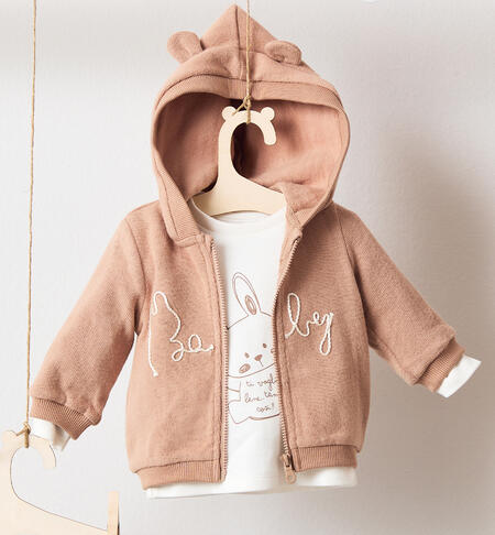 Felpa per neonato iDO realizzata in felpa effetto tricot. Il modello presenta apertura frontale con zip e ricamo. L’articolo è realizzato in tinta unita.