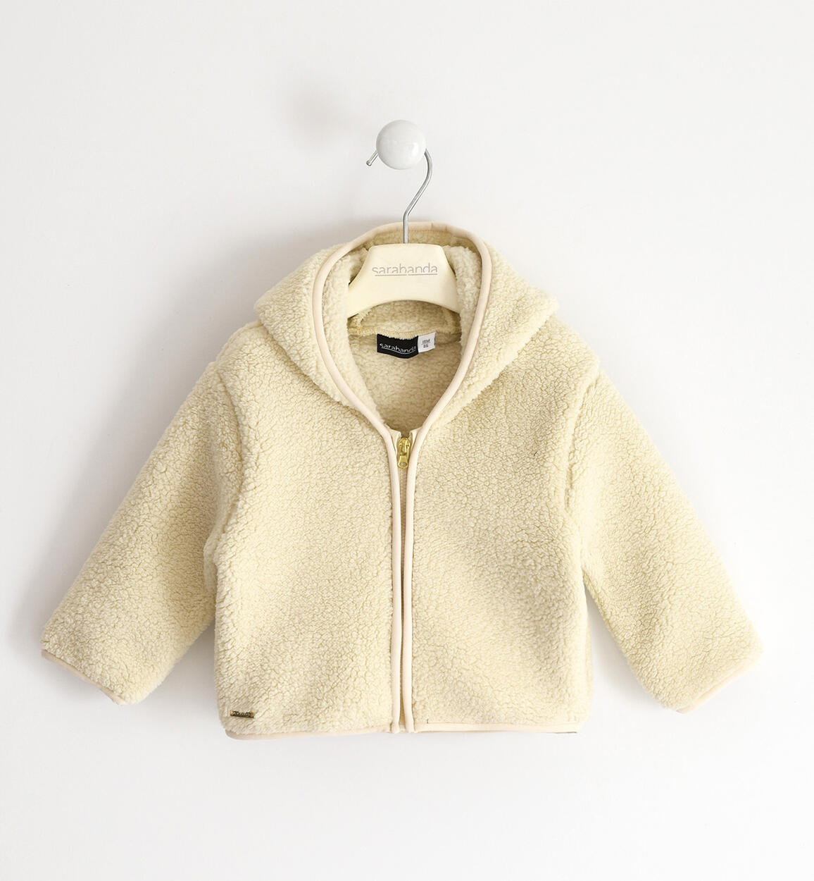 Felpa con cappuccio ed orecchie Sarabanda realizzata in morbidissimo tessuto. Apertura con zip.