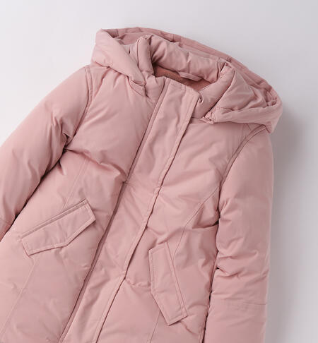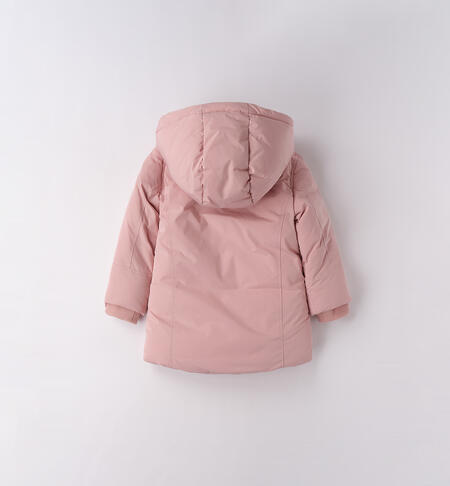 Giubbotto per bambina iDO realizzato in taffetà con imbottitura in ovatta. Corpo foderato in caldo e morbido tessuto. Cappuccio staccabile. Apertura con bottoni e zip con doppio cursore. Polsino interno antivento realizzato in costina. Lunghezza al ginocchio. Zero piuma: 100% senza piuma d’oca. Zero freddo: protegge dall’acqua, dal freddo e dal vento. Zero stress: cura e manutenzione semplice