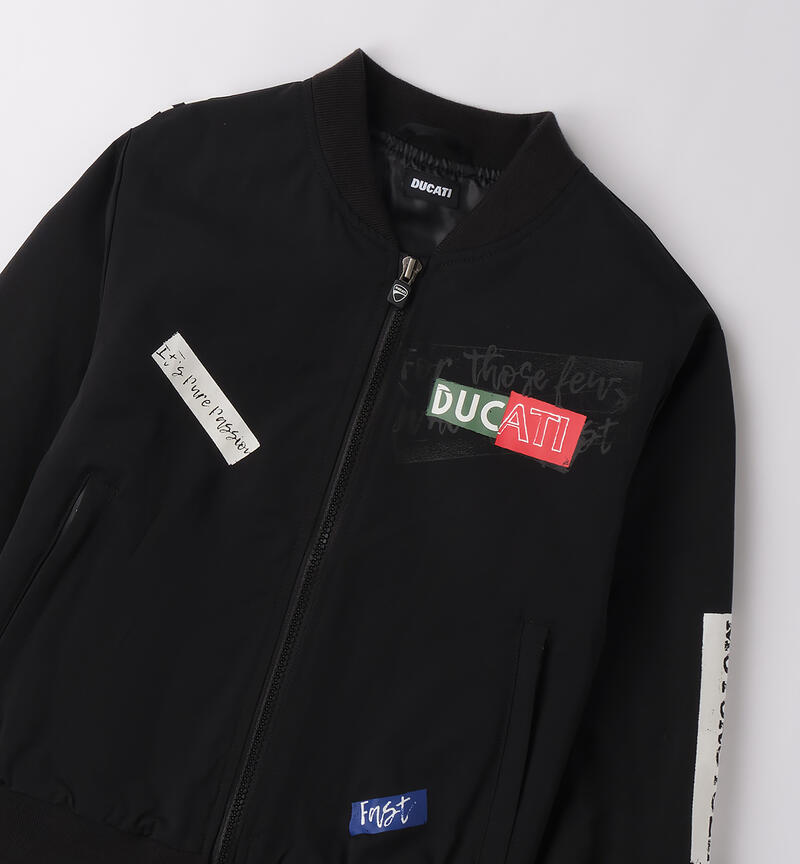 Giubbotto Ducati per ragazzo 3-16 anni in cotton nylon. Il modello presenta apertura frontale con zip, tasche laterali e fantasia tinta unita.