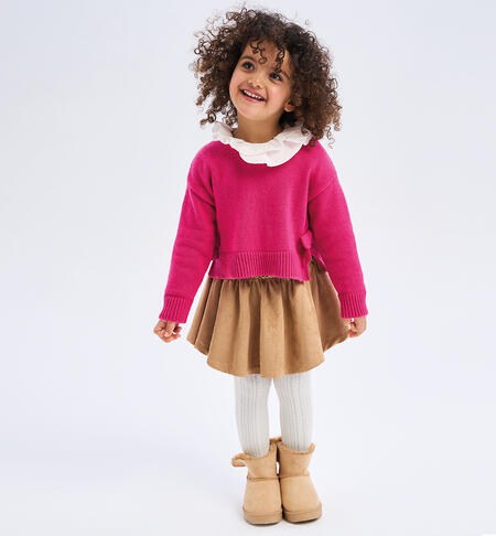 Gonna per bambina iDO realizzata in morbido tessuto. Il modello ha vita elasticizzata e fodera in satin. Lunghezza sopra al ginocchio