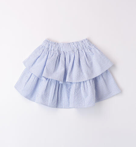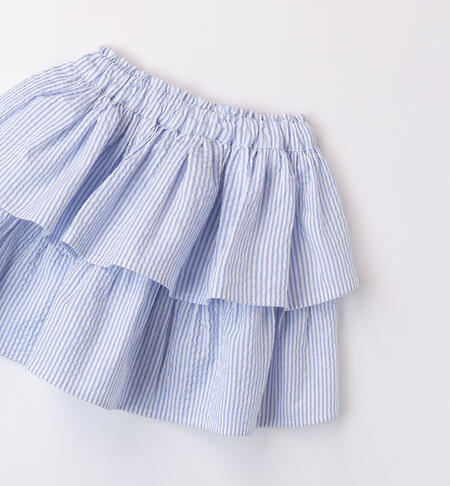 Gonna per bambina iDO da 9 mesi a 8 anni realizzata in tessuto seersucker di cotone. Il modello presenta vita elasticizzata, fodera in cotone, balze ed รจ in fantasia a righe. Lunghezza sopra al ginocchio.