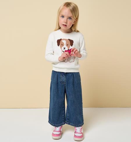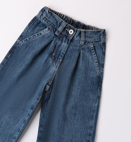 Jeans per bambina iDO 9 mesi – 8anni realizzati in denim 100% cotone. Il pantalone presenta apertura con bottone e zip. Tasche laterali e tasche dietro. Modello largo.