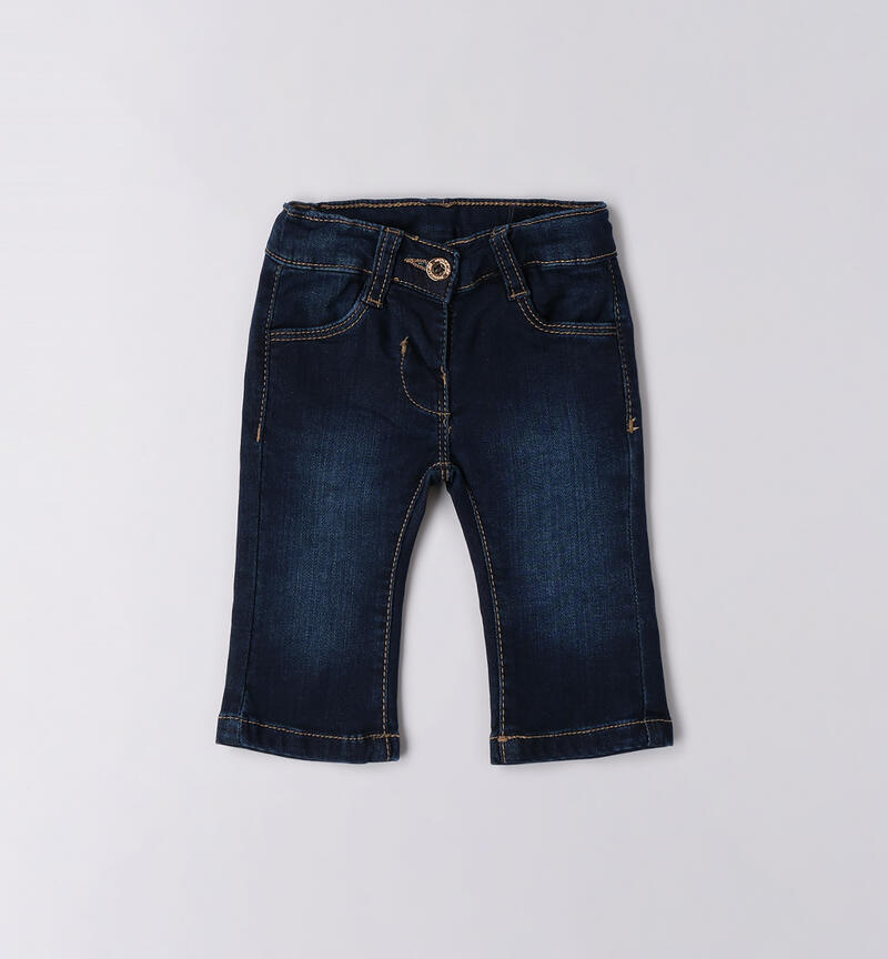 Jeans neonata Minibanda 1 – 24 mesi realizzato in denim maglia di cotone stretch. Fondo a zampa. Vita regolabile con elastico asolato interno