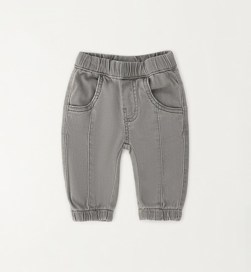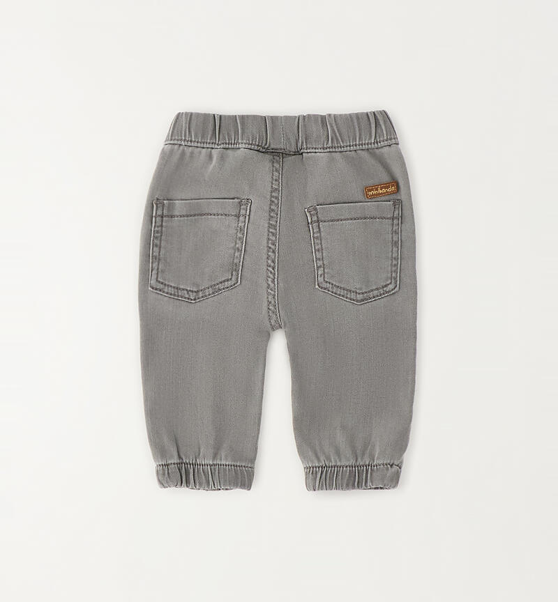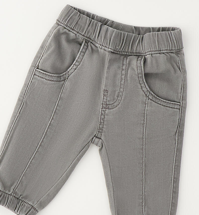 Pantalone lungo in denim maglia per neonato Minibanda realizzato in cotone stretch. Elastico in vita e sul fondo gamba