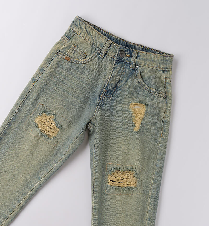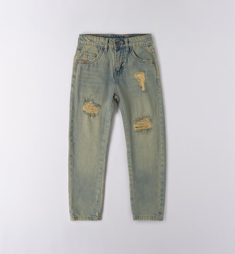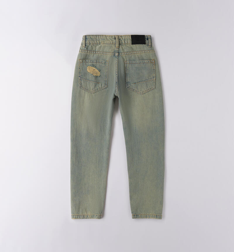 Jeans da ragazzo Sarabanda 8-16 anni in 100% denim di cotone. Il modello presenta apertura con zip e bottone, tasche laterali e strappi. Vestibilitร carrot fit