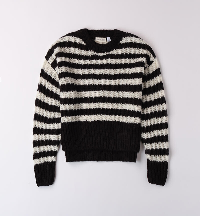 Pullover per ragazza Sarabanda 8-16 anni realizzata in tricot mohair. Modello in fantasia a righe.
