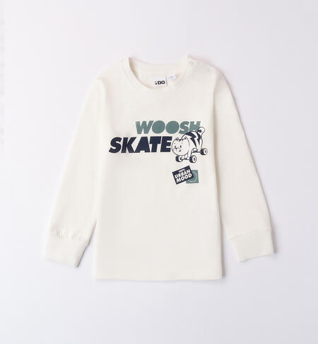 Maglietta per bambino realizzata in jersey 100% caldo cotone. Il modello presenta apertura sulla spalla fino alla taglia 3 anni per agevolare il cambio e la vestizione. La maglietta è in fantasia tinta unita con scritte e stampa frontale.