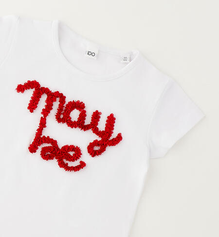 T-shirt per bambina iDO realizzata in jersey stretch di cotone con applicazione ricamata in organza.