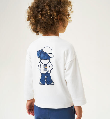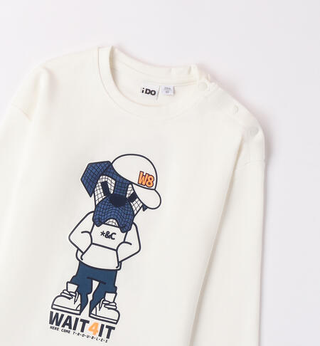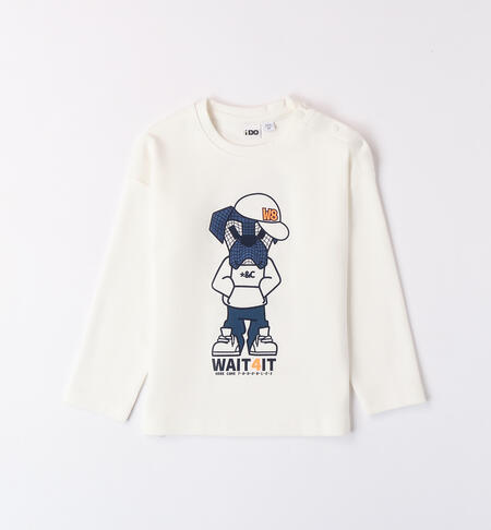Maglietta per bambino iDO 9 mesi – 8 anni realizzata in interlock 100% cotone. Il modello presenta fino alla taglia 3 anni, apertura sulla spalla con bottoni a pressione per agevolare il cambio e la vestizione. La maglietta รจ in fantasia tinta unita con stampa cane, sia davanti che sulla schiena. Spalla calata.