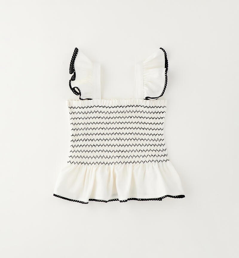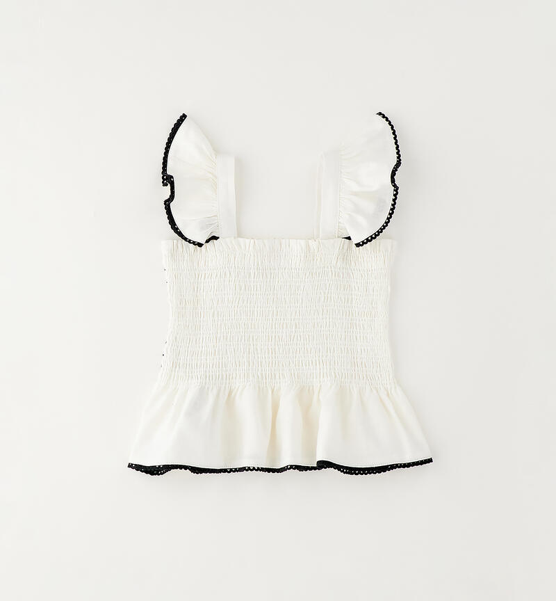 Camicia per bambina Sarabanda realizzata in viscosa e lino arricchita da ricamo e trina