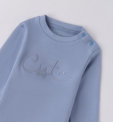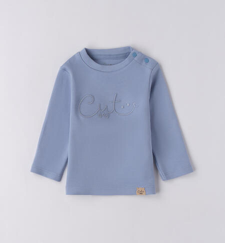 Maglietta bimbo neonato iDO in interlock 100% cotone. Il modello presenta apertura sulla spalla con bottoni a pressione per agevolare il cambio e la vestizione, fantasia tinta unita con ricamo